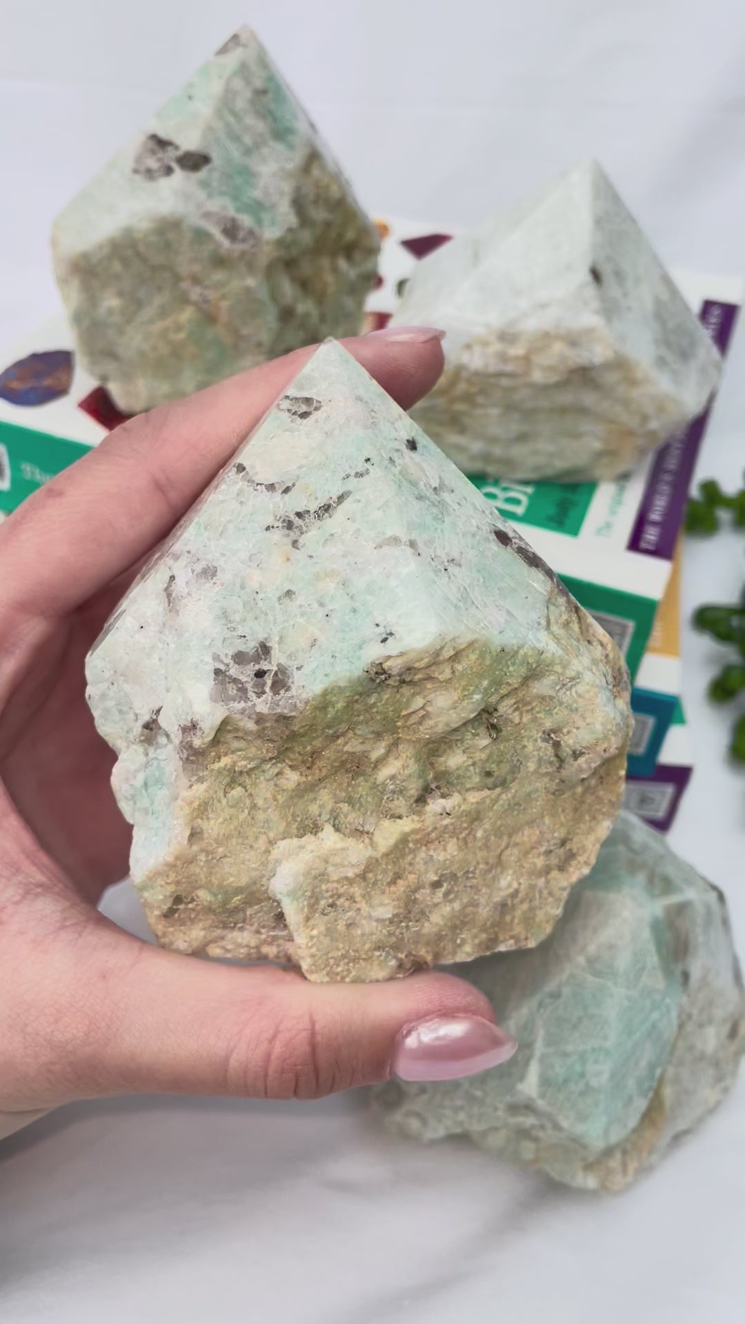 Amazonite 1/2 sparkly quartz with smoky quartz inclusions