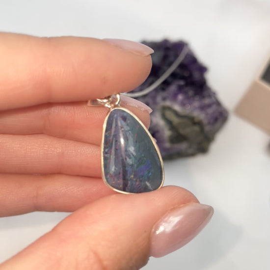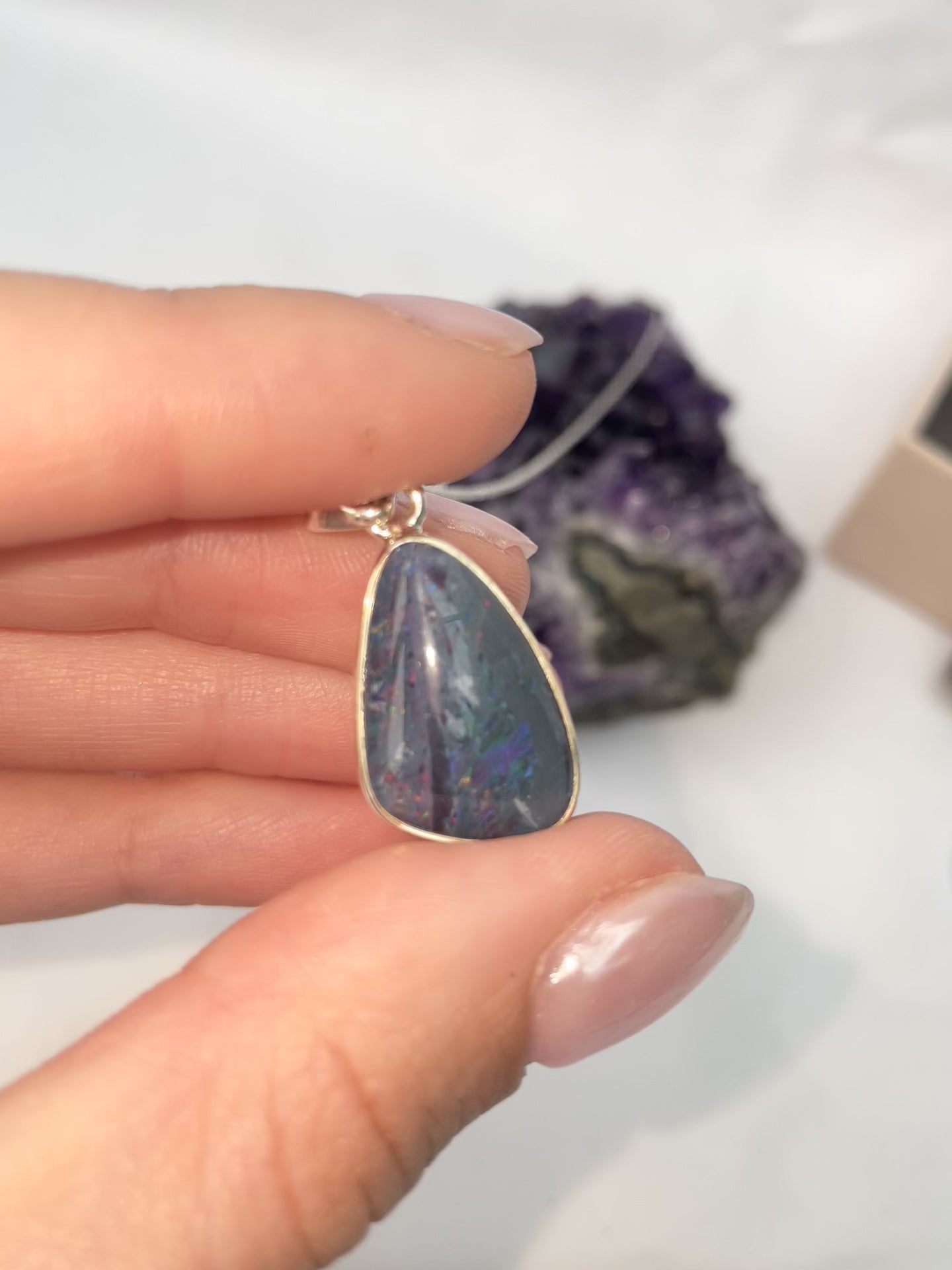 Sterling silver Australian opal pendant. Comes on an 18 inch chain, please let me know if you want a longer chain and I can get one ordered in for you.