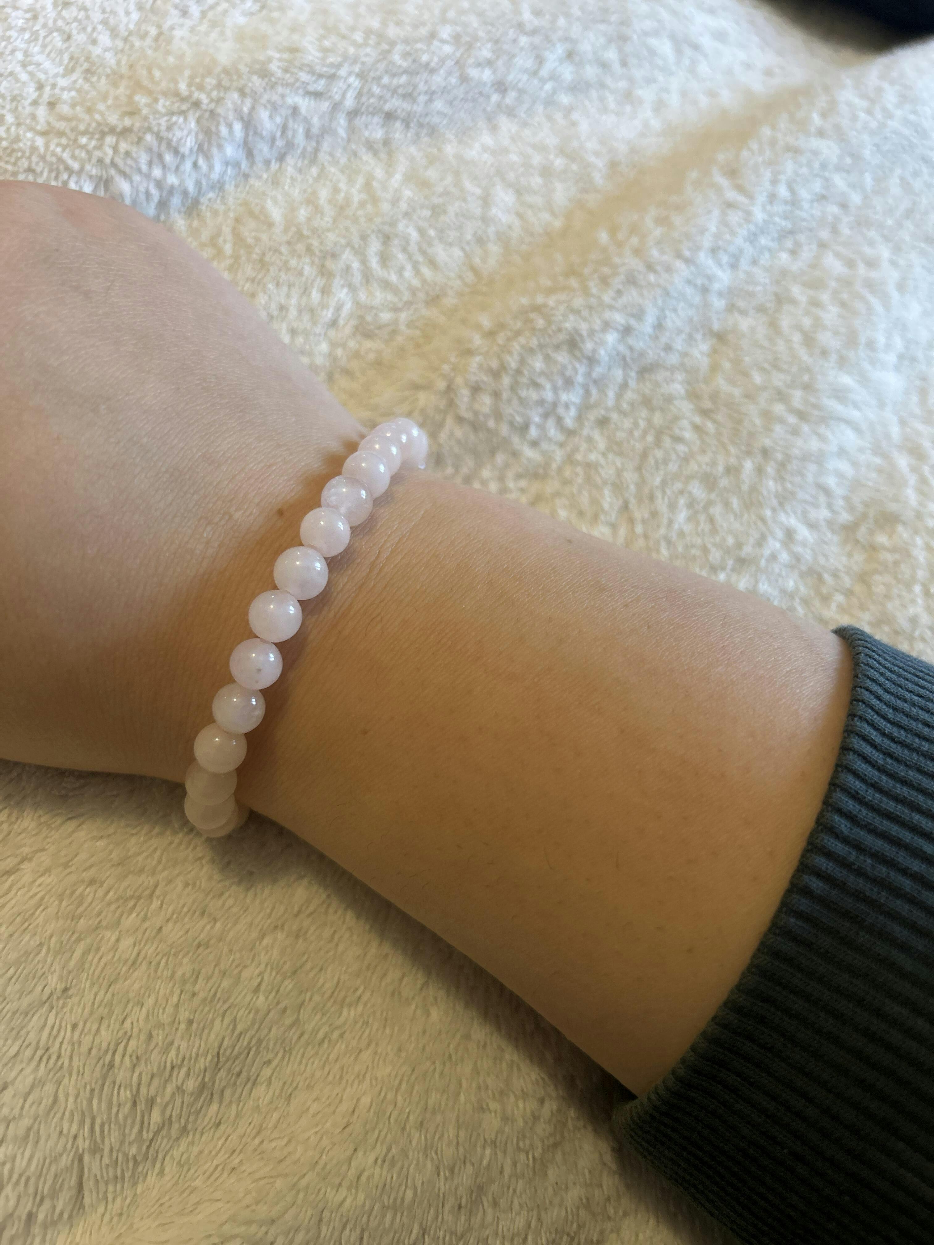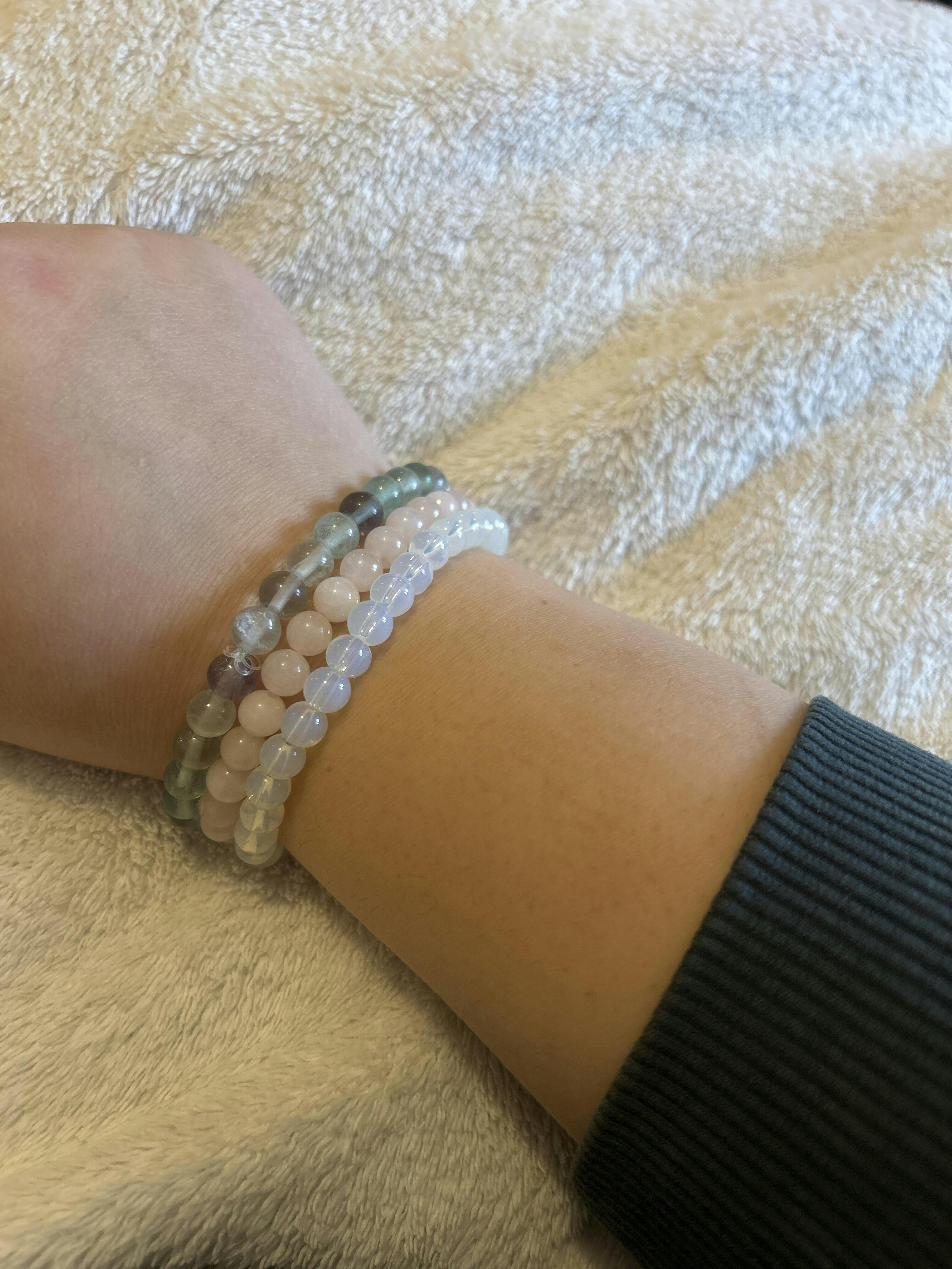 6mm elasticated bead bracelets. Roll on and off your wrist instead of stretching to make them last longer.