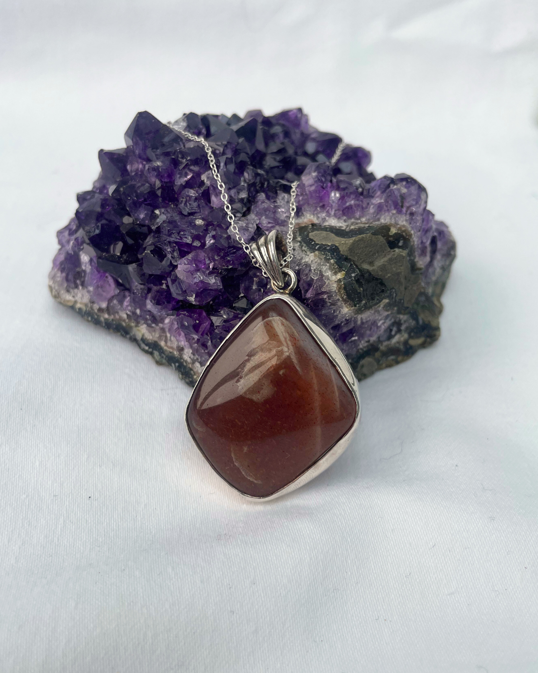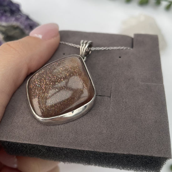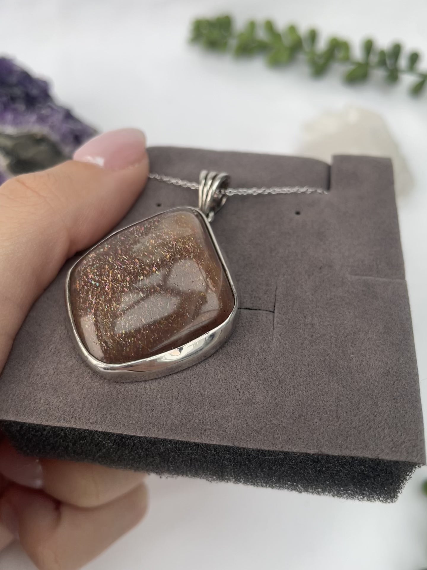 Sterling silver Moonstone pendant. Comes on an 18 inch chain, please let me know if you want a longer chain and I can get one ordered in for you.