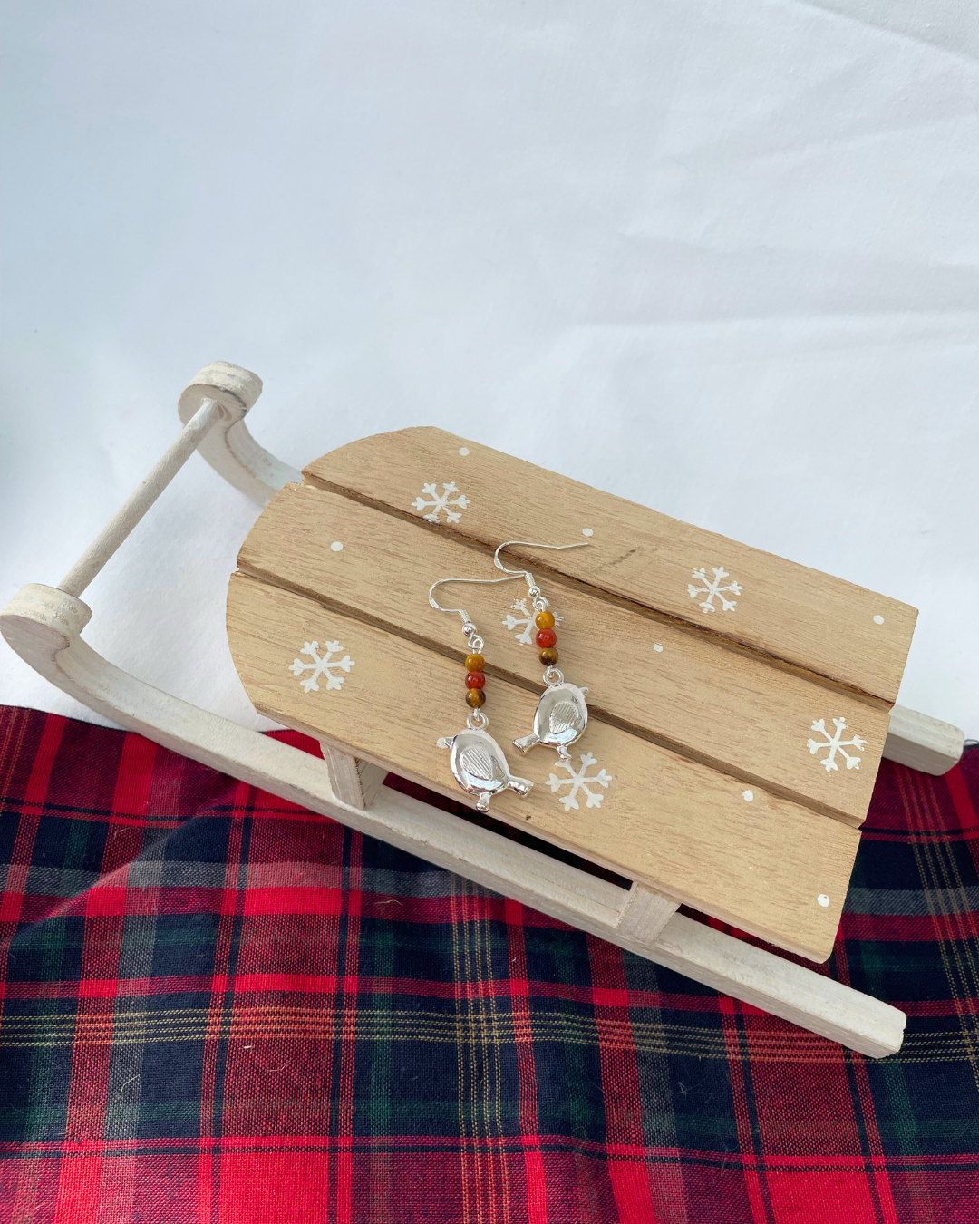 Handmade sterling silver tigers eye + carnelian robin dangly earrings