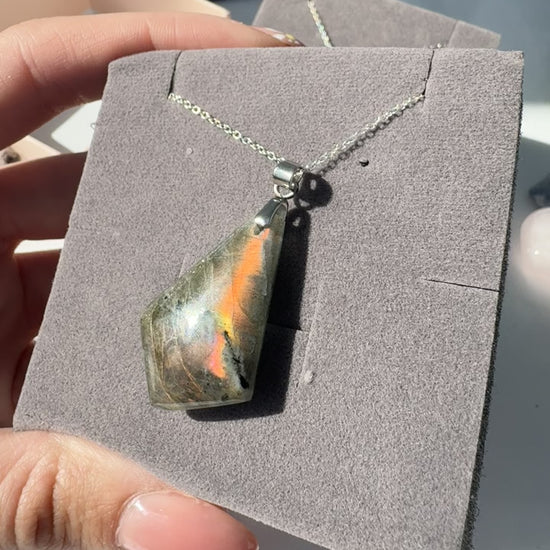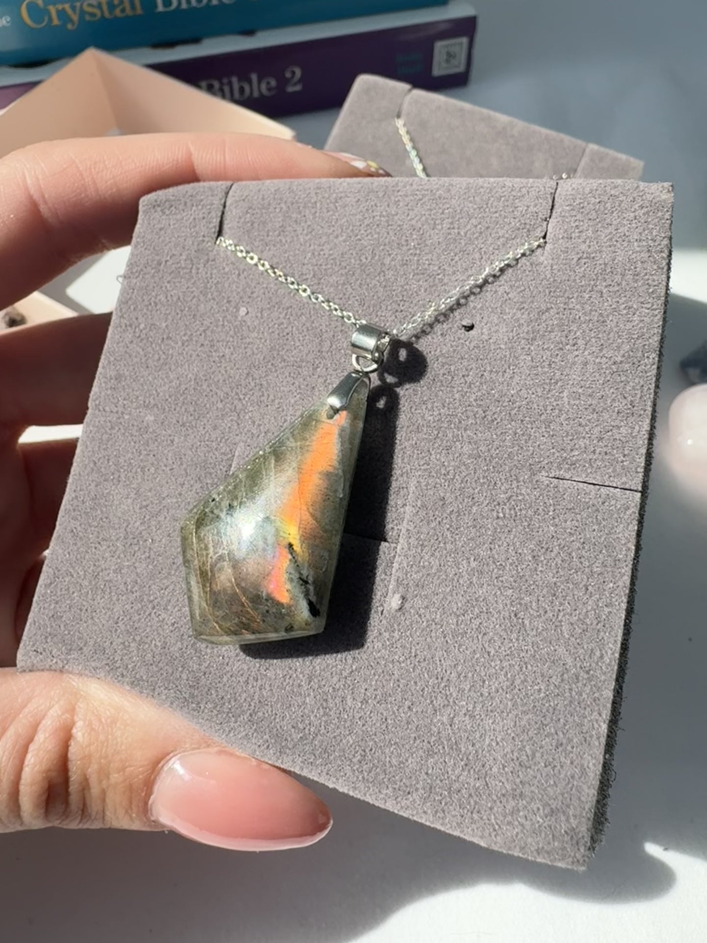 Sterling silver labradorite pendants. Comes on an 18 inch chain, please let me know if you want a longer chain and I can get one ordered in for you.