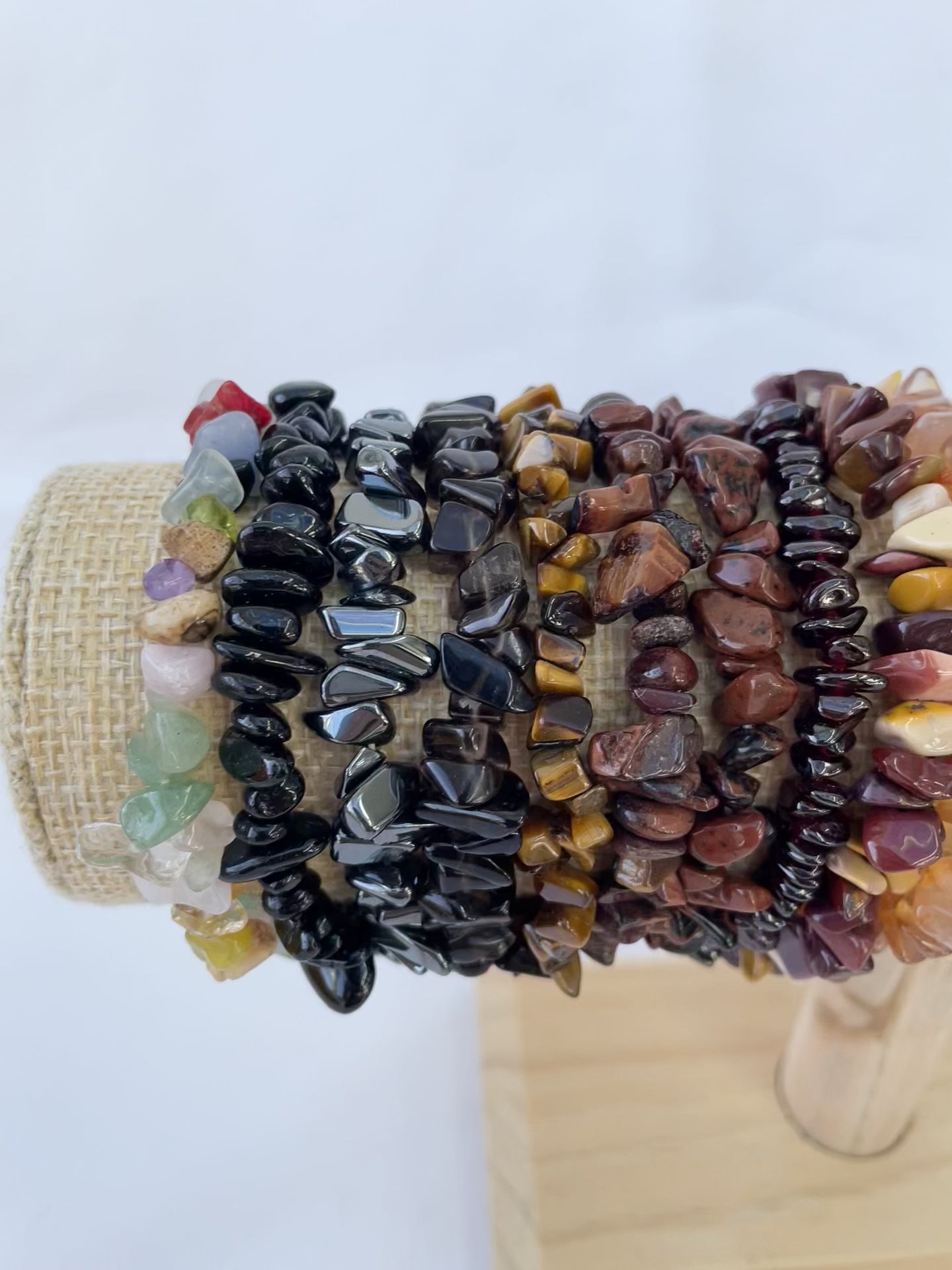 Variety of crystal chip bracelets, made with genuine crystals. The bracelets are elasticated and are roughly 6 inches, please measure your wrist before buying.